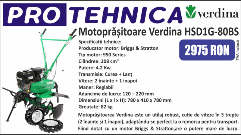 Motoprășitoare Verdina HSD1G-80BS + SET 5 ACCESORII